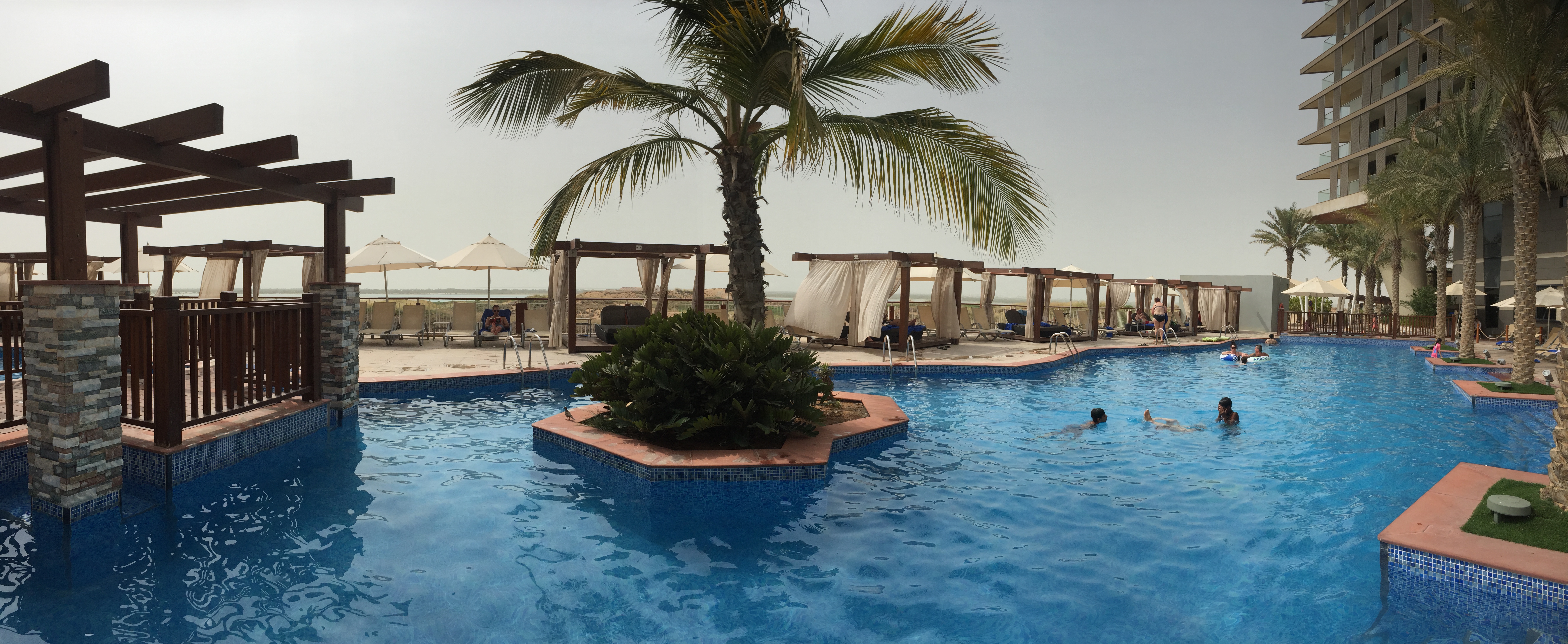 Temat för resan är retreat. Läsa böcker, lyssna på podcasts, träna och bada. Jag har länge velat åka till Abu Dhabi och har ett par grejer här jag vill se men utöver det så är det chill till max. Efter att ha badat och simmat en kilometer eller så på förmiddagen var jag vrålhungrig när det var lunch så jag beställde en klassisk Radisson pizza med mozarella som fick stå för gårdagens kvällsmat, dagens frukost och lunch. Tycker alltid tiden går så snabbt när man reser så jag brukar glömma bort att käka.