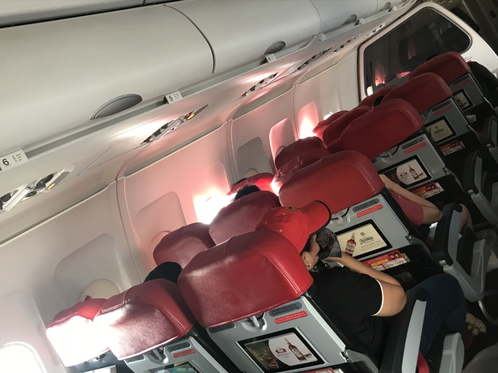 Air Asias flotta är en Airbus flotta bestående av A320 och A320Neo’sar. Det finns bara en klass ombord och man kan knappast säga att det är någon lyx och flärd när man reser med Air Asia, men det är smidigt. Stolarna är av modell äldre och ombord finns det ingen IFE eller wifi så ta med en bok eller egen iPad/Dator om du inte vill titta ut genom fönstret på utsikten.