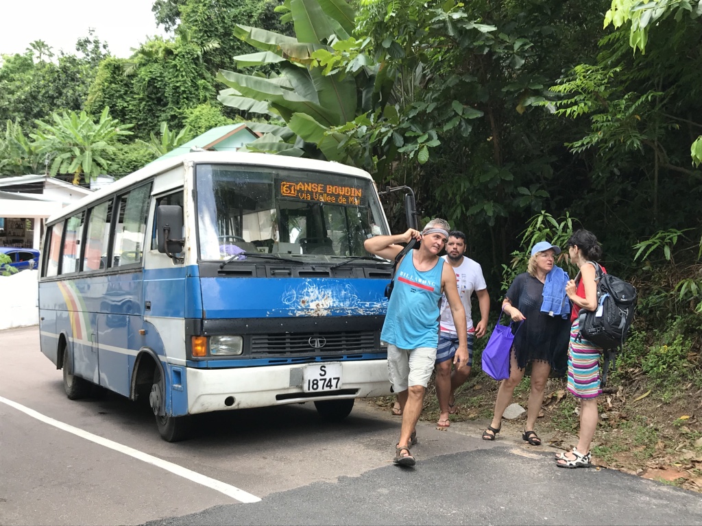 När jag landade på Seychellernas lilla flygplats tog jag en taxi till båten som skulle avgå mot ön Praslin 1,5 timmar efter jag landat. Det tog cirka 15 minuter att åka till färjeterminalen där jag även köpte båt biljetten som man även kan boka online vilket kan vara bra för båtarna kan vara fulla. Taxi är ett relativt dyrt transportmedel så jag skulle rekommendera att även använda sig av lokalbussarna om man inte vill spendera allt för mycket av resebudgeten på transport. Lokalbussarna kostar hela 3,5 SEK och fungerar utmärkt och är punktliga vilket man kanske inte alltid räknar med på en ö med maniana style.