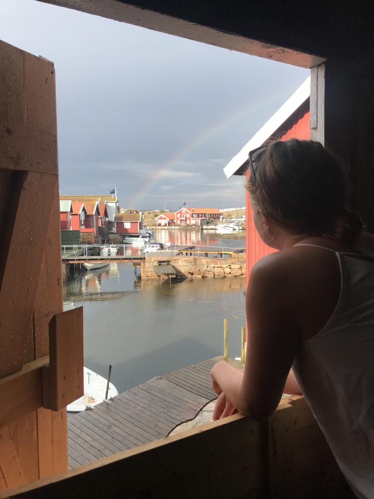 It was raining from everywhere and we had no time in our busy vacation schedule where we could wait for any rain to stop. We needed dinner. And at Smögen you need to eat Smögen shrimps. My kind uncle drove us down to the fish market and let us stay in his sjöbod where we had our wine and Smögen räkor. Idyllic.