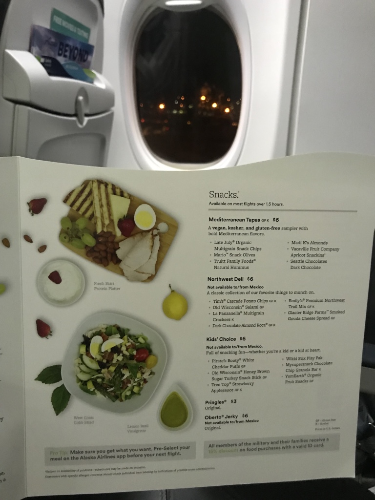 While waiting for takeoff so I could get a view of Seattle from above I also checked out the food and beverage menu. I was surprised that the assortment were good. In america you expect cookies, sweets, sweets and even more sweets in size XL but Washington is a health conscious state and that was also reflected in the F&B menu. If I haven’t already had dinner I could definitely have found something worth eating at the menu.