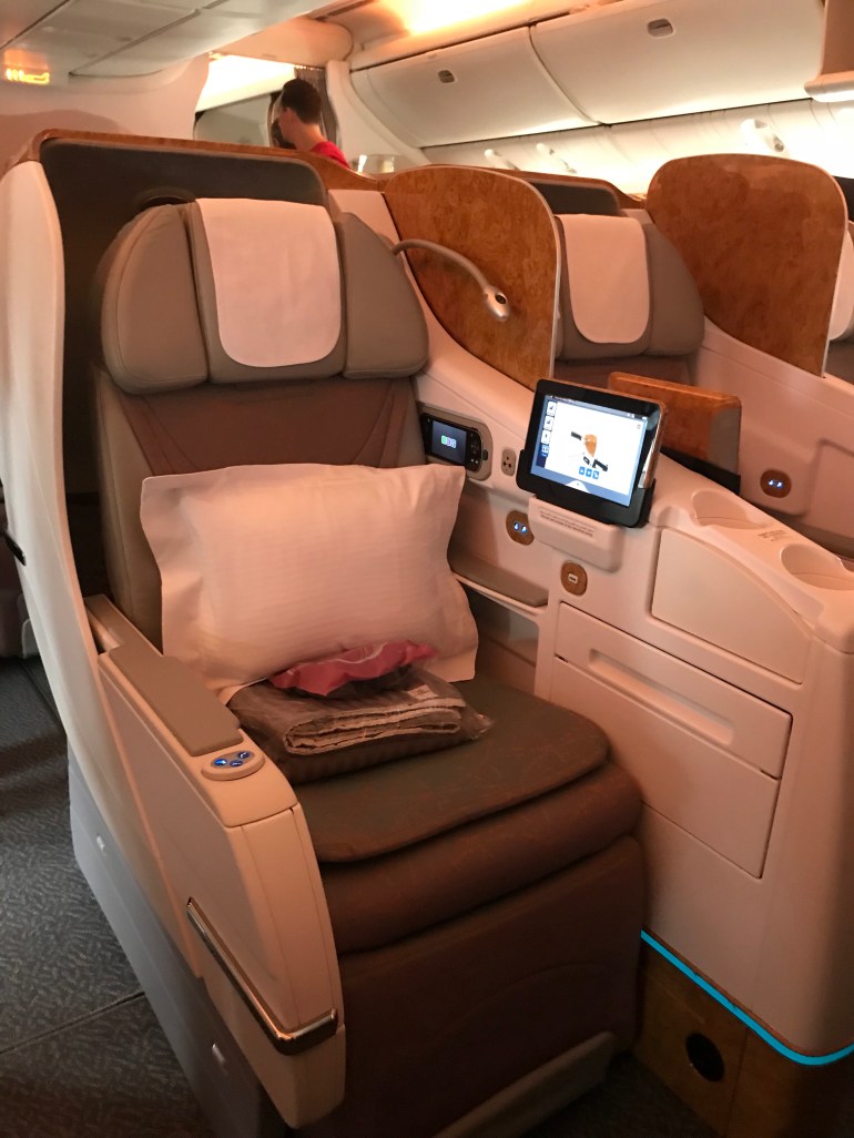 Med en 3-4-3 config i B777 spelar det mig personligen mindre roll vart jag sitter frånsett en mitten plats mellan två personer i storlek XXL. Denna gång fick jag 3 stolar för mig själv på en mittenrad vilket jag uppskattar så man kan ligga ner. Stolarna är väldigt sköna och cushionen lagom mjuk.