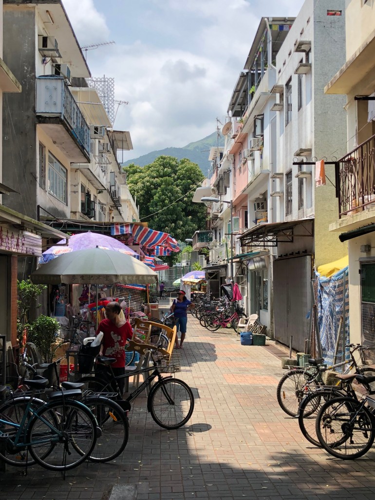Något som jag verkligen gillar med Hong Kong är mixen av hela världen. Fyrtio minuter från blänkande skyskrapor känns det som man kliver in i en liten kinesisk by. Gatorna var fulla med cyklar. Det fanns små shoppar med diverse attiraljer ovh tvätten hängde på tork på balkongerna.