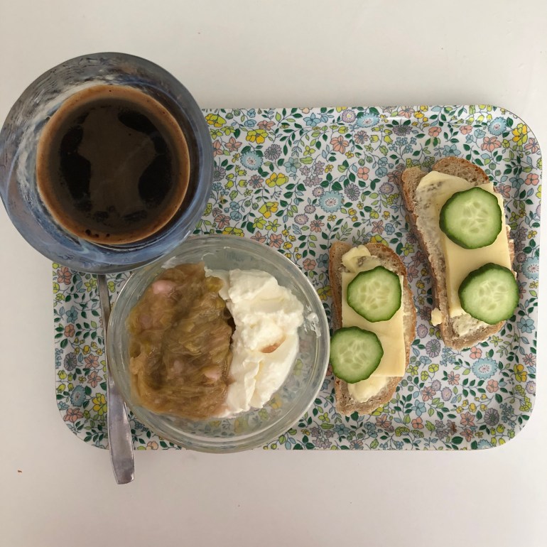 Frukosten är min absoluta favoritmåltid därför äter jag ofta den två gånger per dag. Till frukost och kvällsmat. Nu har jag inte hetsat upp från sängen 05:50, kastat på mig träningskläderna, tagit två riskakor och en kaffe vid köksbänken och kastat mig iväg till jobbet för att infinna mig vid skrivbordet senast kl 8 och dessförinnan hunnit bränna av ett träningspass utan verkligen tagit mig tid att dra mig i sängen i fem minuter, sätta mig vid bordet och äta frukost och inte börjat dagen med att maxa. Även om jag tränat väldigt ofta på morgonen har det inte inneburit mer än 10-15 minuters senare ankomst till skrivbordet på jobbet utan att ha börjat dagen med en stress peak. Helt ärligt saknar jag stress tempot men jag har verkligen insett att det är skönt att njuta av en vardagsmorgon som det vore en helg utan att det slösar bort tid från mina 24 timmarsdygn.
