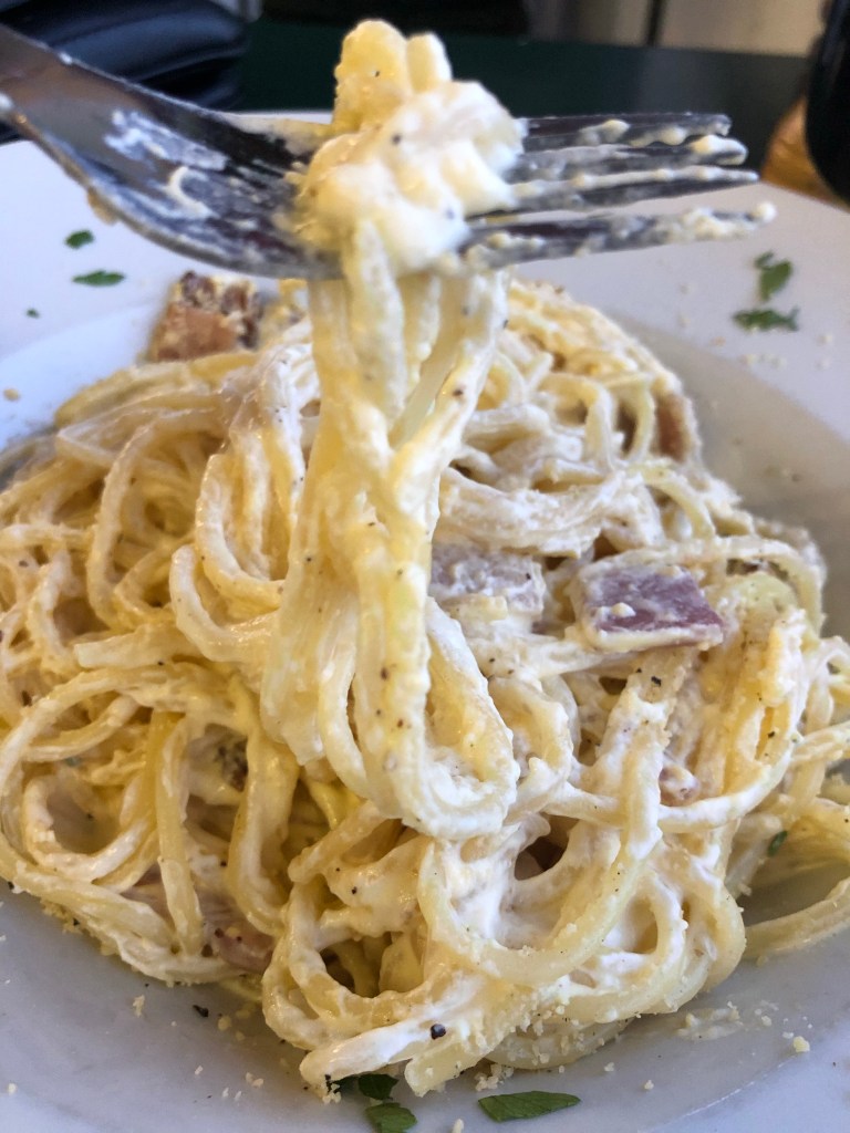 Dagen efter jag sprungit marathon skriker min mage alltid efter mat. Då jag även reste en stor del av efter mara dagen blev det snacks till mat men på kvällen längtade jag riktigt efter en pasta. Så pasta fick det bli. Gick till en restaurang med rooftop var och beställde en en minst sagt krämig spagetti carbonara. Yum. Servitrisen förundrades nog att jag nästan lyckades klämma i mig hela jätteportionen och dessutom kryddade med en tiramisu till dessert. Gott var det ja.