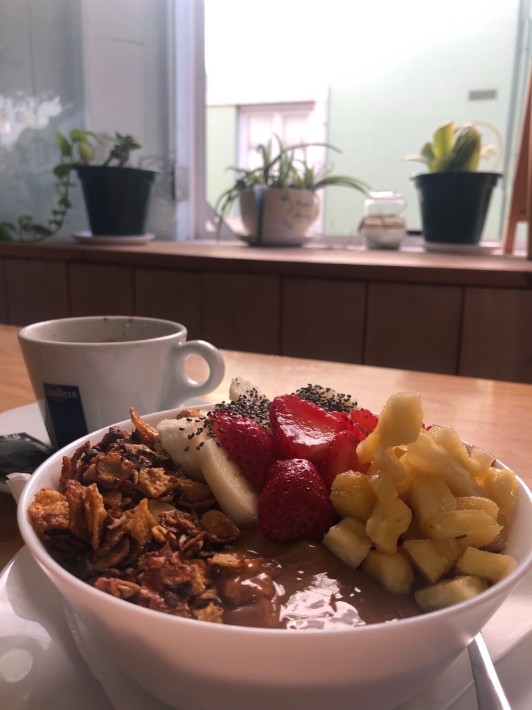 En eftermiddag var jag ruggigt sugen på en smoothie bowl. Läste om Little break fast på TripAdvisor och jublade inte men det var vad som fanns. Tyvärr var personalen lika otrevlig som recensionerna sa men Acai bowlen jag beställde smakade bra och även kaffet. Tur det. men finns det andra alternativet skulle jag gå till dem.