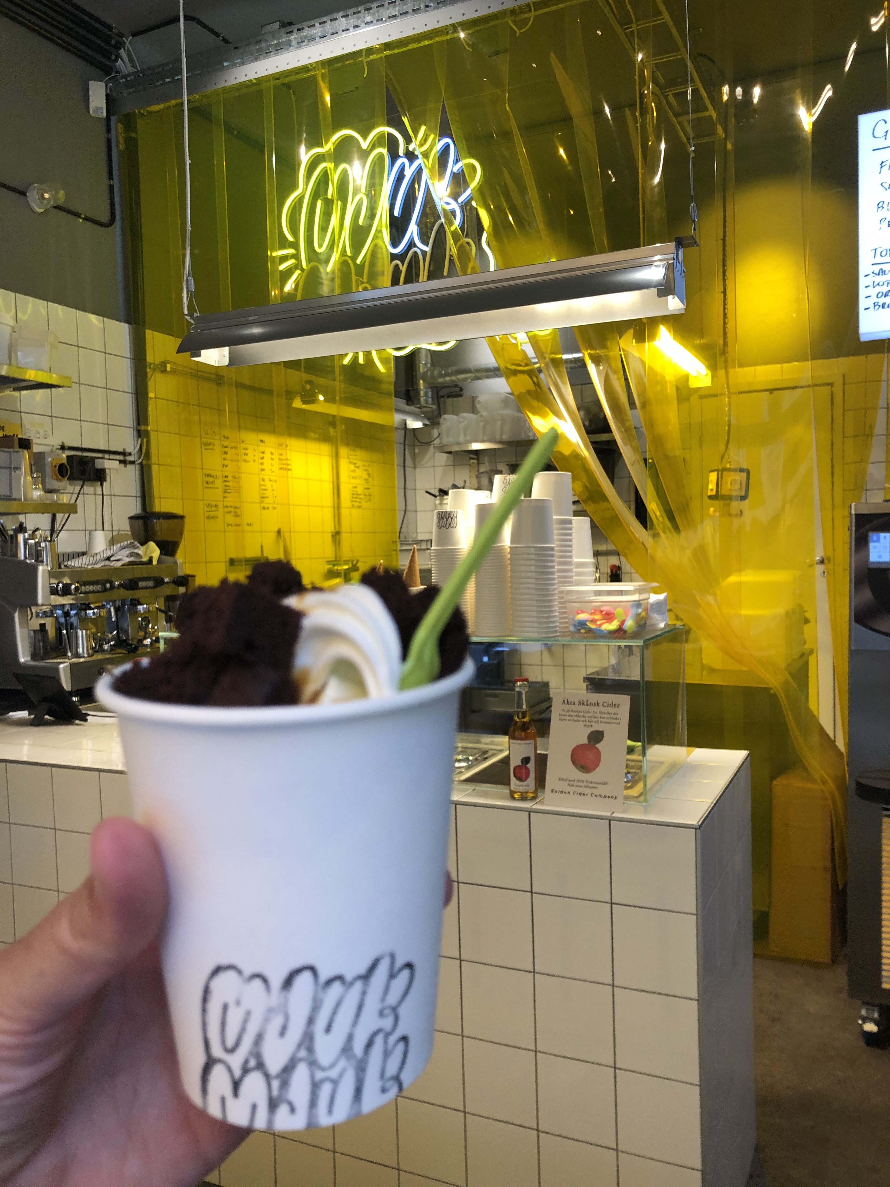 Mjukglass med brownie bites och kolasås, någon? Var förbi MjukMjuk i Vasastan påväg hem från jobbet en måndagskväll och lyxade med glass. Den var god men inget wow. Föredrar donkens mjukglass och 65 riksdaler för denna kändes överprisat även om det är kul att gynna lokala entreprenörer. Gott men inte värt. Upptäckte (maj, 2021) att det öppnat en till MjukMjuk i Västermalmsgallerian.