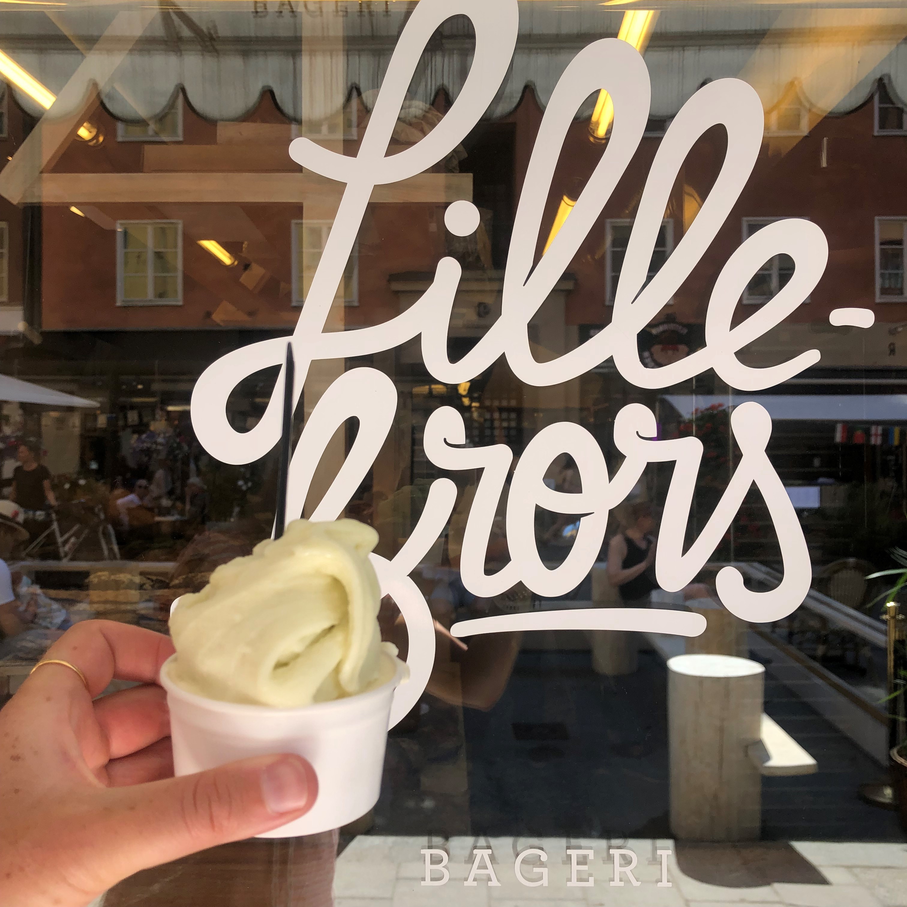Det populära bageriet i Vasastan, Lillebrors bageri erbjuder inte bara utsökta bakverk utan ibland gästspelar de även med glass i sitt utbud. En sommardag cyklade jag förbi och fick smaka. Smakerna var högst orginella och de varierar men temat var natur och det var björkglass om jag inte minns fel samt mjölkglass som jag valde. Goda men bakverken är godare.