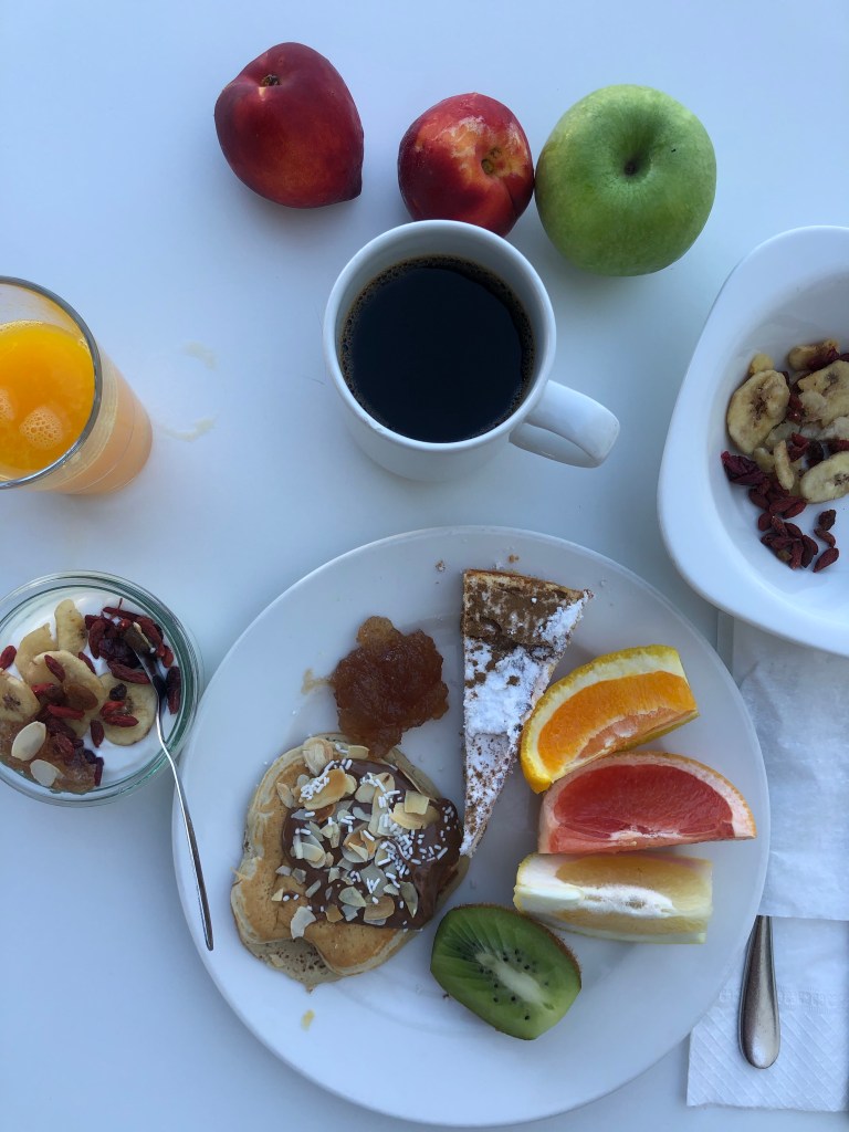 Hemmet för veckan var Sunprime Miramar resort fem kilometer väster om Rhodos stad. Vings egna vuxenhotell som erbjuder träning. Passade mig perfekt! Nu var dock gymmet stängt pga nationella restriktioner i Grekland men man fick träna utomhus och det hölls SATS klasser nästan alla dagar. Instruktören var medelmåttig men trevlig.