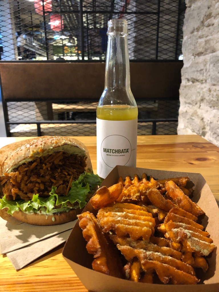 Skulle egentligen gå till ett burgarställe som var poppis men de serverade ingen mer mat för dagen så fick bli grannstället, Vego machine. Tog en vegansk burgare och sötpotatis pommes samt en matchbata dryck. Smakade bra men inte wow. Pommesen var dock en höjdare. Vego machine hittar du i stadsdelen Balta när tågstationen i en chic industri lokal där det finns en foodcourt.