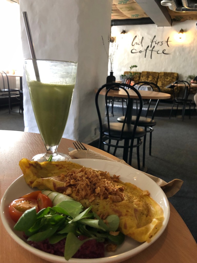 Favoritställen går jag gärna tillbaka till. Vid ett nytt Tallinn besök gick jag till Lissana för kvällsmat. Tog en crêpe med fetaost och spenat. Den var okej bortsett från att rostad lök var strösslad över. Iced matcha tea blev det till som gjorde måltiden komplett.