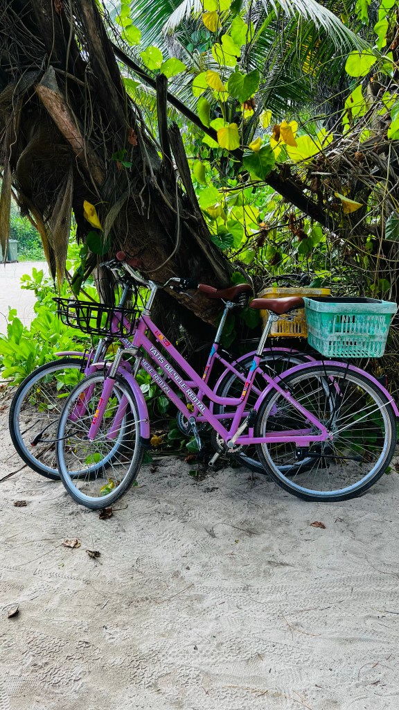 If you come to La Digue you must rent a bike. Most accommodations rent out bikes but there are also plenty of places around the island where you can rent your bike for app. 8 EUR a day (FEB, -23). The biking paths are very well paved and it is fantastic to bike around and then just stop for a swim or a juice at one of the many juice bars along the shoreline. You cannot bike around the whole island it is one kilometer that is not covered by biking track. It is mountain and jungle so you cannot carry your bike either. The complete biking distance from one side to the other is around 10K.