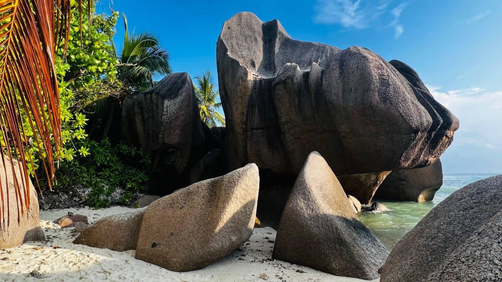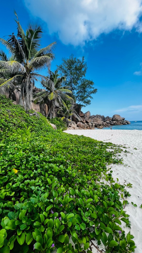 La Digue is a small island. It is almost car free except for delivery trucks and vans taking guests to their accommodation. Here you either walk or bike around. There are no huge resorts from major hotel chains. A few larger hotels are to be found but the majority of places are self catering villas or apartments. I love to stay at these local places. Hotels I know how they look like and what to expect and is convenient from time to time if I want a great pool or good gym. I booked a guesthouse at a hill located 10 minutes walk from Grand Anse beach. The owner of the place was in my age and very accommodating. I am a sucker for great views so the place was at a hill. Was a bit sweaty to walk up there but the garden was stunning. Every morning they served breakfast at the poche including a huge plate of fresh fruit that had grown in the garden. Can it be better?