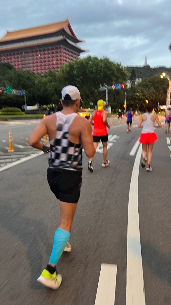 The start of this race was at 05:10 am. Crazy early. I had booked a hotel ten minutes walk from the start but I wasn’t ready to run a marathon when I woke up at 04:10 to drink the strongest coffee I could find at 7eleven and have a banana. There was 3K, 5K, 10K, 21K and 42K distances to choose from so plenty of runners where at the start this early Sunday morning infront of the President palace. Organization was efficient in true Asian manner. If you handed in your bag you were supposed to use a re-usable runners bag. There was no warm up and it was enough to be in the corral five minutes prior start. Nike Runclub had pacers, remember the good times with NRC in Stockholm when it existed, so I placed myself a bit before the 4 hour ballon. And then moments later we took off at the dark streets.