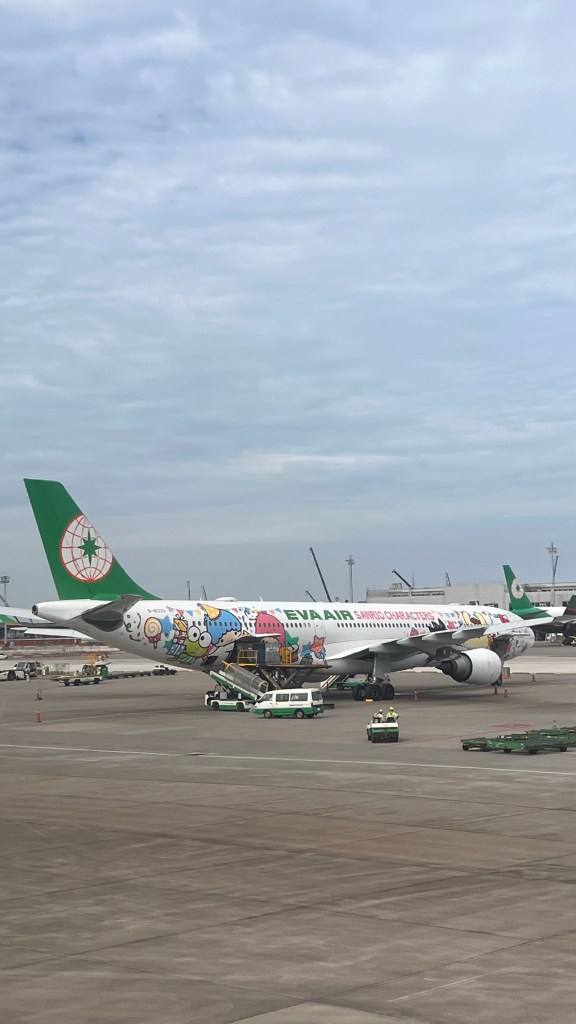 The almost four hour flight between Narita and Taipei was operated by an A330 with very cute livery characteristic for Eva Airlines.