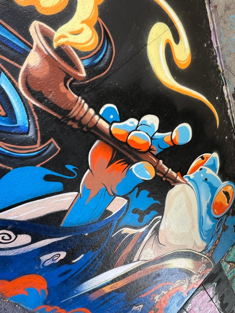 Along the river banks the walls are decorated with beautiful graffiti so it is like an art exhibition to walk there.