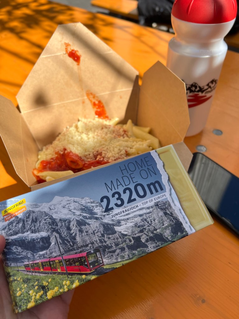 I picked up my bag and skipped shower. Sorry! Went straight to have a pasta and enjoy the after run gathering with fellow runners. and of course we got a second chocolate bar. It’s Switzerland. And a very nice finisher t-shirt!