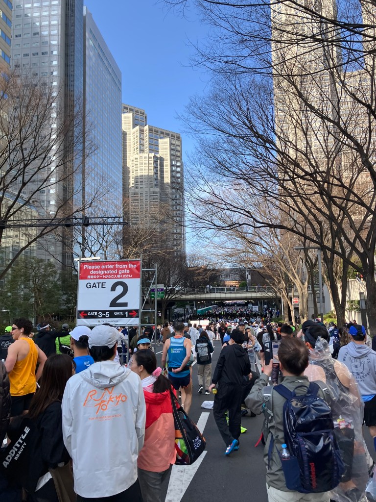 Race day came. Sunday 1st of March. The run started at 09:10 so no need to get up in the middle of the night. Tokyo is huge so I checked out a bit where to stay when I booked the hotel so there would be a direct subway line to the start. It took 20 minutes to go there from Asuksabashi where we stayed. It was not super busy when I got there but the toilet lines where already reaching way outside of the well organized corrals. I badly needed to go especially since I just had my coffee, some water and a banana smoothie. You could not bring any drinks into the starting area so had to finalize all outside. A Japanese lady that I spoke to in the long line said that if you miss your corral you need to start the last so when mine closed 25 minutes before the start I had to give up and line up.